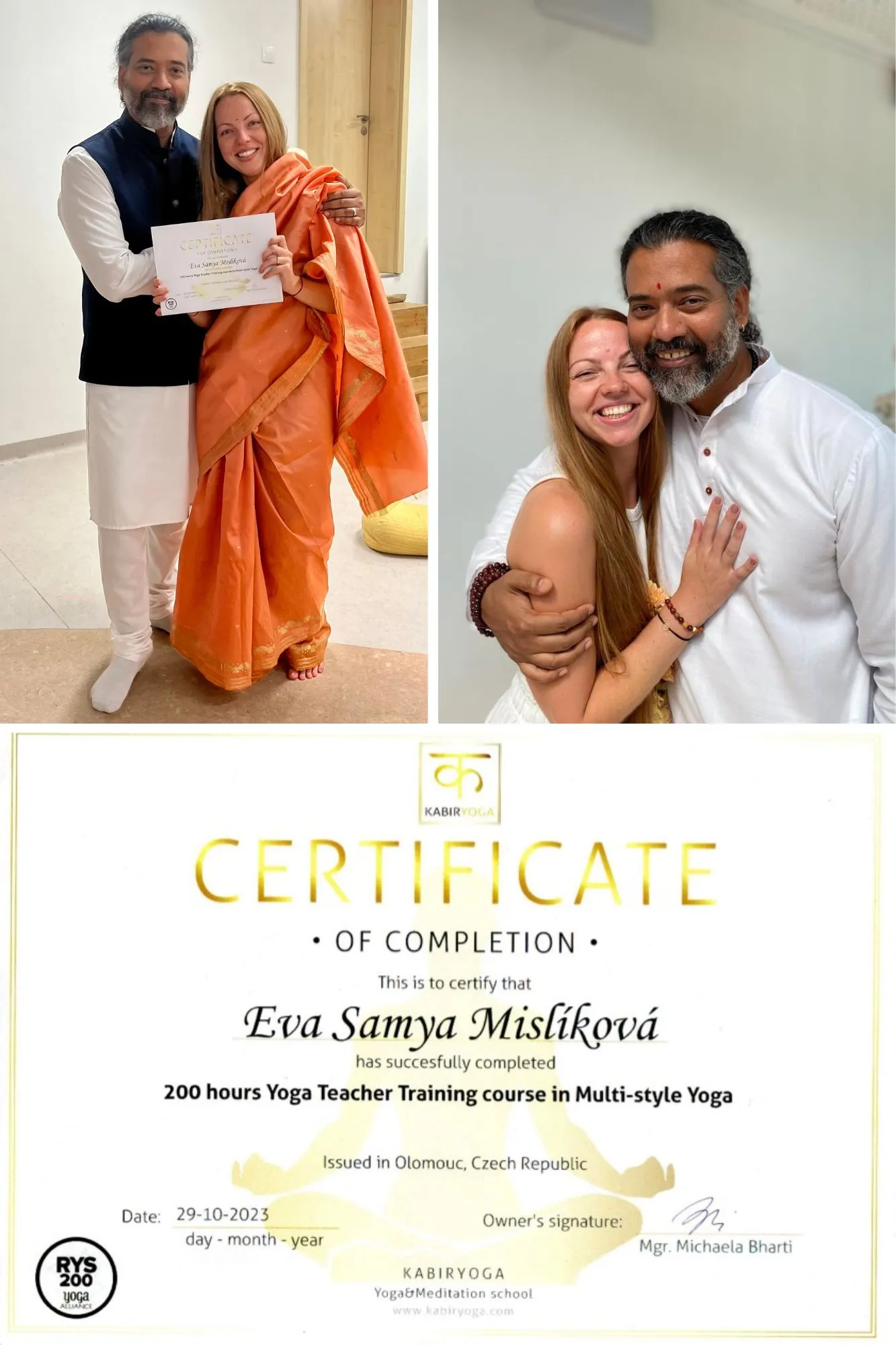 Certifikát od indického učitele jógy a meditací 🙏